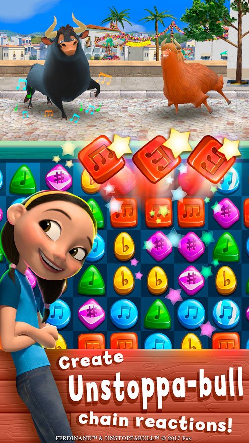 Собирайте комбинации, чтобы действовать в удивительных танцах. Игрок, который сможет скачать Ferdinand: Unstoppabull на андроид познакомится с талантливыми персонажами этого чудесного мультфильма о быке. Постарайтесь помогать им и делайте их жизни счастливыми. Вы должны стать участником грандиозного события в танцах и показать свои умения перед целым миром героев. Впереди ожидает больше ста разнообразных уровней, которые предоставят массу веселья. Вы должны решить все головоломки, чтобы душой почувствовать эти испанские ритмы и их музыку. Попробуйте создавать комбинации, чтобы создать целую цепочку действий.Забавные приключения Фердинанда