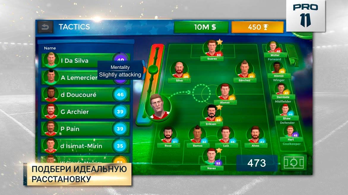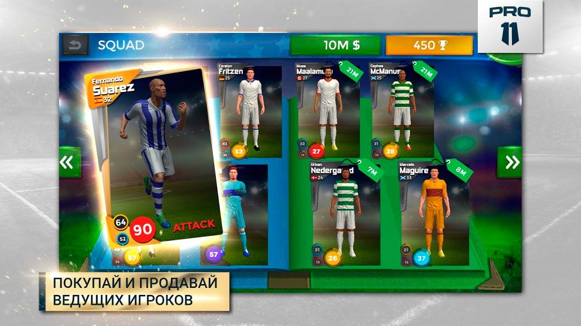 Если скачать Pro 11 - футбольный менеджер на андроид, то за короткий срок времени можно добиться максимального успеха и стать лучшим футбольным менеджером. Задумка очень крутая, разработчики постарались на славу и подготовили крутой проект. Возьмите под управление футбольный клуб, возглавляйте сборную и старайтесь пройти великую Лигу Чемпионов. Создание интересного сценария дает возможность получать опыт управления командой и знакомит нас с многочисленными командами. Мы сможем встретиться не только с известными командами, но и с теми, кто вообще нам неизвестен. Создавайте личную команду звезд, расставляйте собственны игроков, покупайте их из других команд. Займитесь управлением трансферов, проводите постоянные тренировки, общайтесь со спонсорами и еще многое другое. В общем, возможностей в игре очень много, потому есть смысл познакомиться с ней и с головой погрузиться в менеджер.