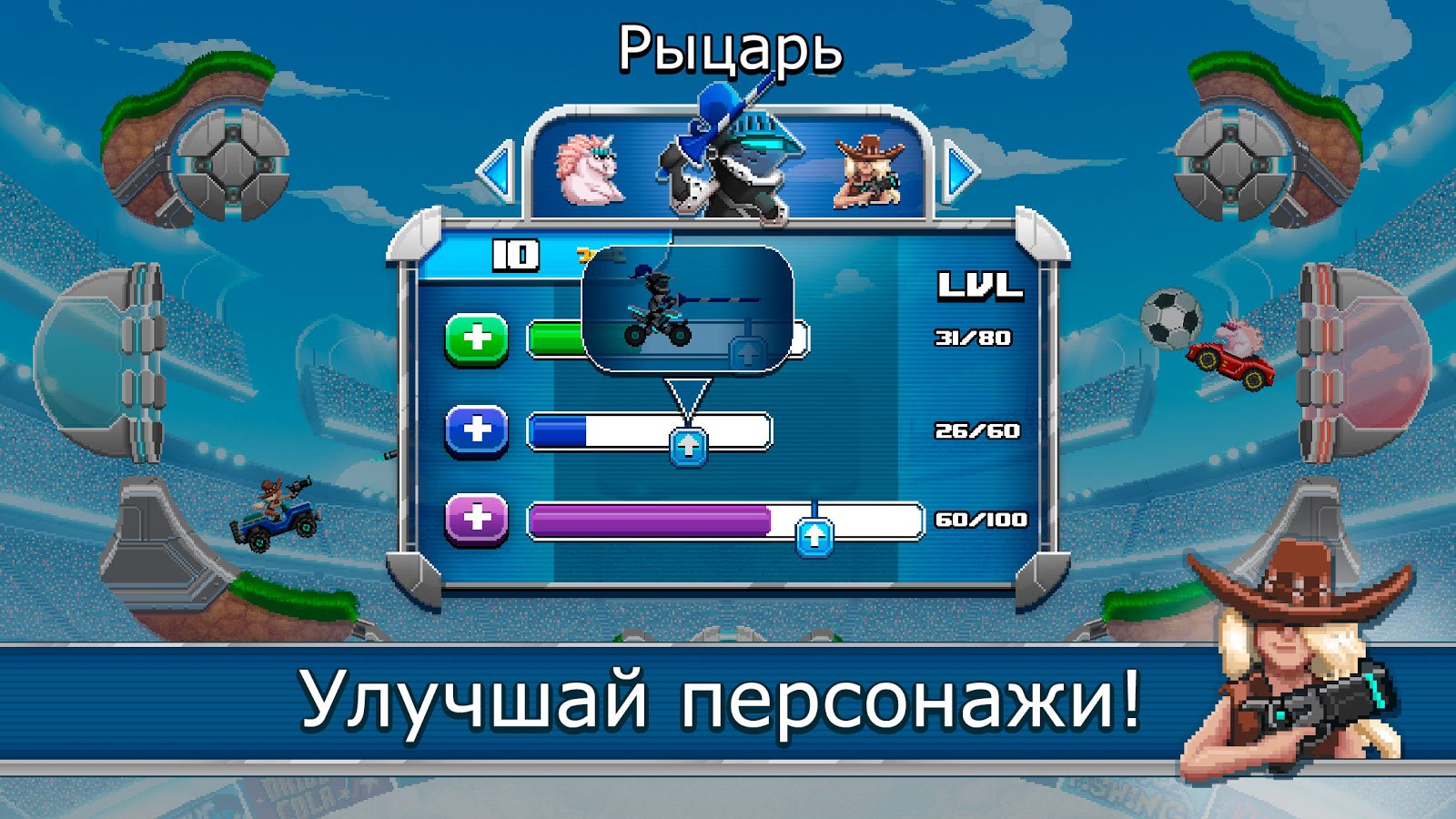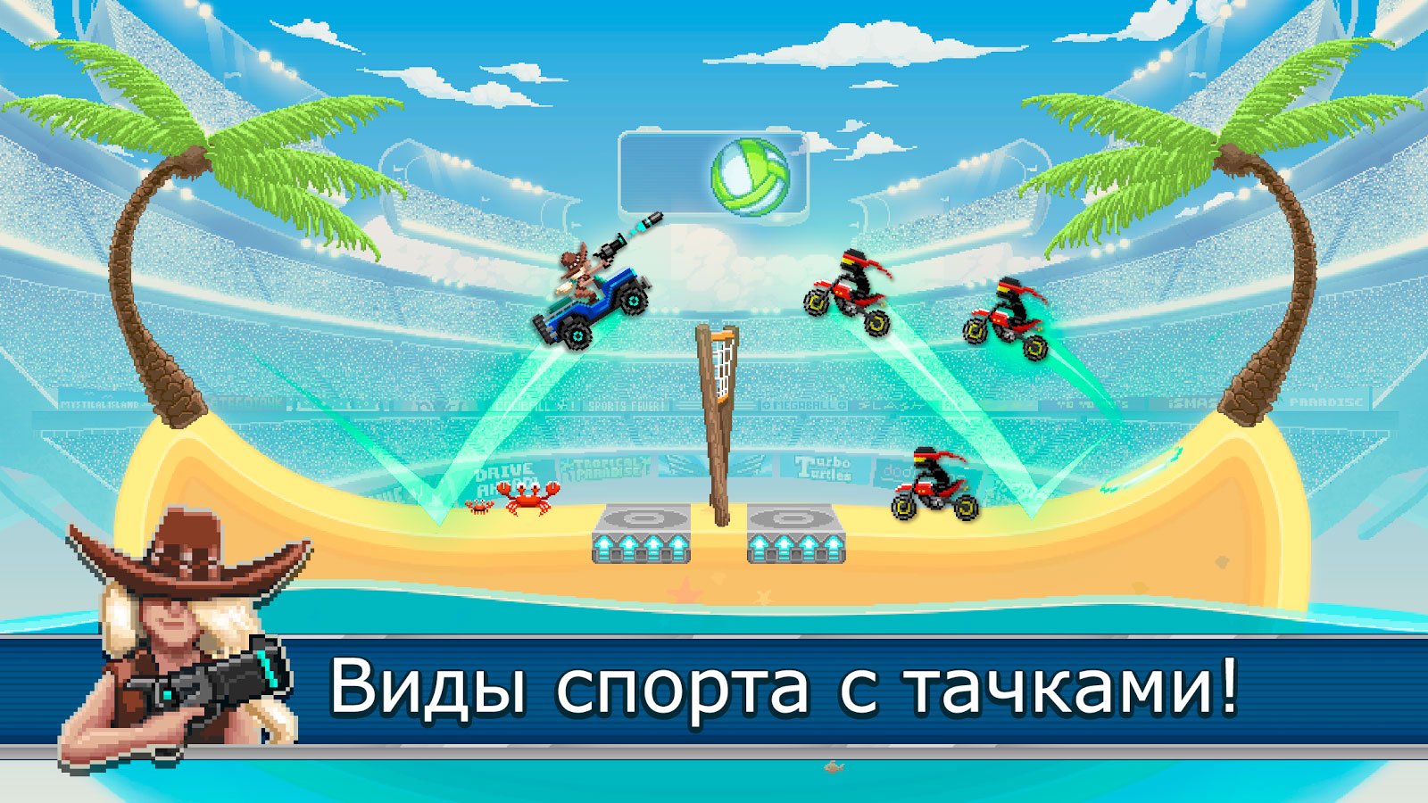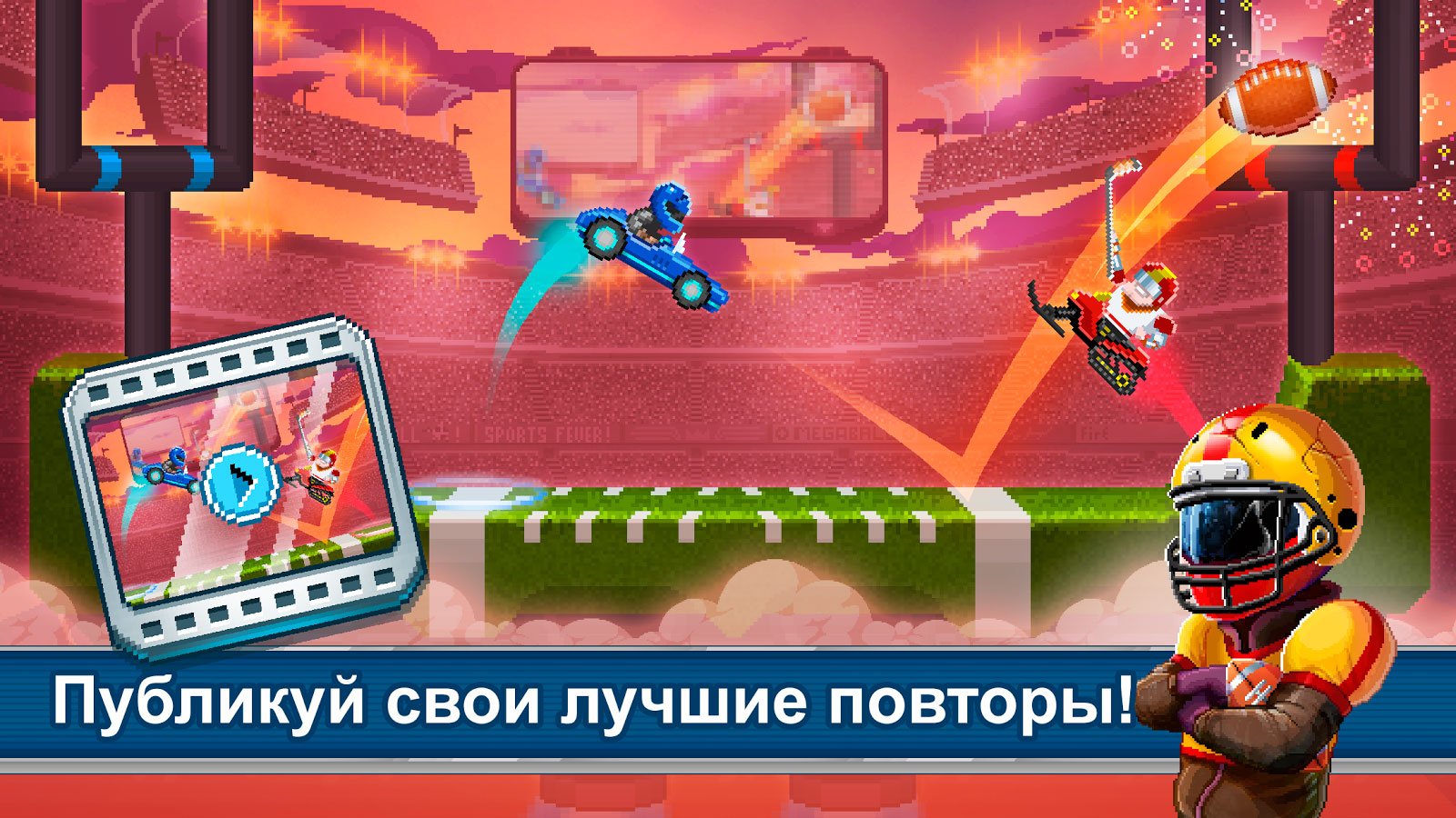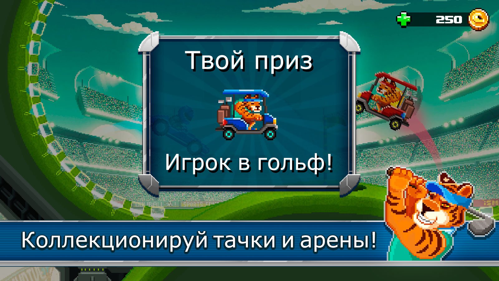 Наслаждайтесь сумасшедшими ударами, обводками и просто этой уникально атмосферой. Записывайте удивительные повторы и делитесь ими со своими друзьями. Опубликуйте крутой момент в социальные сети и получите оценку от друзей. Впереди одиночного режима ожидает огромное количество самых разных по заданиям уровней. За каждую победу гарантирован приз и вполне реально, что им станет автомобиль. Разработчики использовали пиксельную графику, и получилось очень даже забавно. Попробуйте сами принять участие в этом безумстве и не пожалеете.