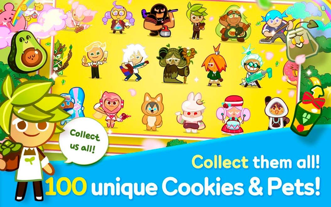 Когда вы будете совершать побег, должны будете качественно и умело уворачиваться от препятствий, которых полно на уровнях. Всего игрок решивший скачать Cookie Run: Побег из печи на андроид получит доступ к более чем сотням разнообразных Печенек. К тому же разработчики видят, какая игра популярная и будут пополнять их новыми Печеньками. Откройте их всех и установите новый рекорд. Вас ждут захватывающие марафоны в этой бегалке и лучшие режимы игры. Красивая красочная графика в стиле мультика выглядит очень веселой, а персонажи более смешными. Приглашайте свободно друзей и устанавливайте каждый день новые рекорды.