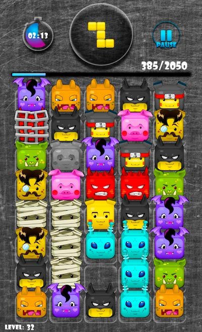 Игроков приглашают в очень уникальный мир головоломок, где нужно будет использовать все свои логические способности и навыки. Составляйте заданные фигуры из кубиков вместе, чтобы выигрывать очередные уровни и наслаждаться победами. Кроме оригинальной составляющей этой игры, вы сможете наслаждаться потрясающей графикой. Такой игровой процесс будет принят с удовольствием, как взрослыми, так и детьми. Выполняйте огромное количество целей и выбивайтесь в лидеры. Как только сможете скачать Cubemania на андроид вы не сможете от этой игры оторваться. В каждом новом задании игроку будут доступны новые цели по составлению полноценных фигурок из кубиков. Сами кубики представляют из себя животных, на которых даже просто приятно смотреть. Все это веселье и оригинальность будут интересными для вас, и вы пройдете легко множество уровней.Cubemania – крутые три в ряд с кубожителями