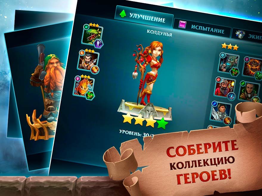 Как только вы окажитесь в этом ролевом приключении, сможете собрать невероятное количество потрясающих героев. Сделайте своего собственного бойца лучшим, и он может стать легендой. Путешествуйте по фантастическим землям и исследуйте их, чтобы обнаружить здесь ресурсы. Используя ресурсы, можно будет прокачать собственных героев и сделать их могущественными. Воюйте на этих фантастических землях с монстрами самых разнообразных характеристик и типов. Решившиеся скачать Forge of Glory: Match3 MMORPG & Action Puzzle Game на андроид смогут встретиться даже с могущественными драконами и эта битва будет самой эпической. Получайте камни, чтобы призывать на новые поединки магических существ и сделайте собственную команду, а потом превращайте ее в армию. Она должна стать непобедимой и разбить сотни злодеев. На войне нет места слабостям, и вы должны это понимать.