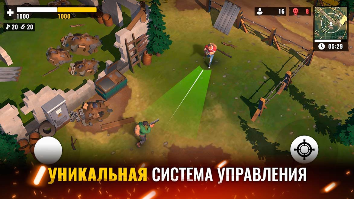 Как только вы окажитесь в этой игре, должны приготовиться к сумасшедшей войне. Вместе с вами шестнадцать опытных воинов приземлятся на масштабную боевую арену и сойдут в противостоянии. С этого момента вы должны будете познакомиться с основами этой игры. Постарайтесь первым делом выбрать для себя идеальное место и устроить там засаду. Дожидайтесь врагов и нападайте на них внезапно. Кроме того в этом вам поможет маскировка. Заходите в открытые дома и постарайтесь найти там как можно больше оружия. Как только вы сможете скачать The Last Stand: Battle Royale на андроид и встретите своего первого врага, его нужно будет убить точным выстрелом или внезапно избить. После этого можно будет подобраться с него ценное вооружение и использовать его. Исследуя саму карту, игроки могут отобрать здесь достаточно много полезных деталей, чтобы потом их вместе объединить и создать еще более мощное вооружение. В этой войне может победить только один герой, и постарайтесь стать им.The Last Stand: Battle Royale – выживание в удивительном мире