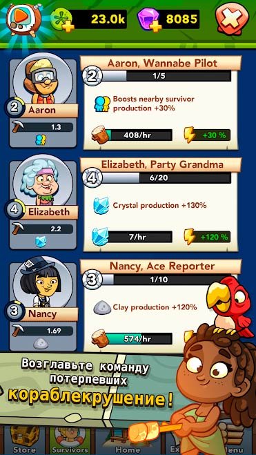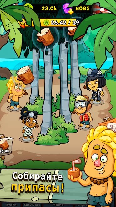 В этой увлекательной игре нет абсолютно ничего сложного, и поэтому она будет интересна даже для детей. Попробуйте быстро разбогатеть и превращайтесь песок в баксы. Вы сможете пользоваться огромным ассортиментом специальных предметов, чтобы производить улучшения. Игроки будут выстраивать целую общину, а потом превращать ее в деревню. Вскоре все это может превратиться с большой город с инфраструктурой. После одной из катастроф некоторая группа людей выжила и решила обосноваться на этом острове, чтобы не погибнуть. Вам предстоит руководить этой группой. Когда сможете скачать Castaway Cove на андроид, получите возможность исследовать таинственные места этого острова и находить на нем затерянных людей. Их выжило очень много после крушения корабля и придется потратить время, чтобы обнаружить всех. Среди них будут ленивые и трудолюбивые. Естественно чем больше у вас в команде буде тружеников, тем лучше вы сможете добраться до целей.Веселимся на острове в игре Castaway Cove