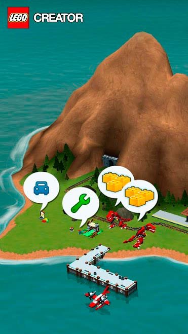Игроки будут отправлены на миленький виртуальный остров, где получат возможность делать с конструктором все что захотят. Можно будет создавать великолепные архитектурные сооружения, производить шикарные дома или сооружать крутые тачки абсолютно любого типа. Можно будет создать даже пароход или самолет, если научиться правильно пользоваться ЛЕГО. Если скачать LEGO Creator Islands на андроид можно будет смело использовать весь запас своей творческой фантазии, чтобы превращать части конструктора в удивительные вещи и объекты. Исследуйте огромный остров и ищите на нем новые места, где следует построить новенькие сооружения. Везде вас будет ждать только веселья и полная свобода творчества. С продвижением по уровням можно будет открывать потрясающие модели и потом спокойно воссоздавать их при помощи конструктора. Если путешествовать по островам можно будет найти даже веселые фигурки домашних питомцев, диких зверей или героев. Все они могут жить в построенных вами домиках и зданиях.