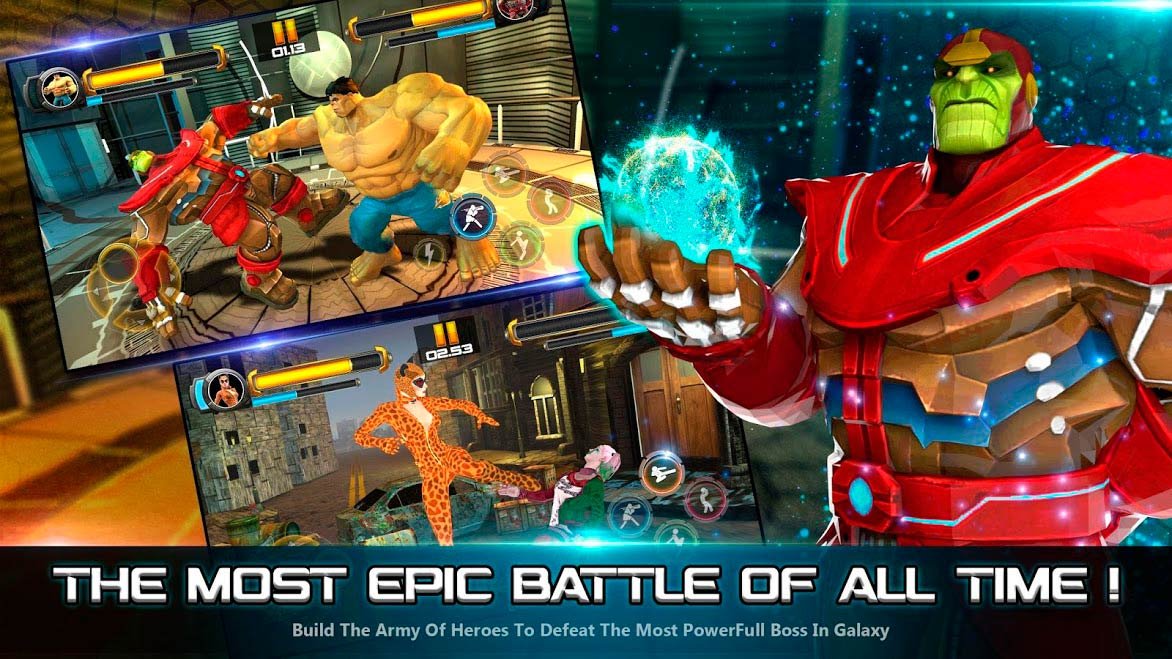 Начинайте собирать в своей коллекции самых лучших и легендарных супергероев. Их список будет постоянно пополняться, и уже сейчас вы сможете проверить кто сильнее. Например, сразитесь за Человека Паука и попробуйте победить Халка. Вообще здесь собралось больше сотни великолепных героев, которых многие знают по фильмам, комиксам или мультсериалам. Вы можете создать свою команду из самых лучших героев, чтобы потом сражаться между другими героями. Наслаждайтесь высококачественной трехмерной графикой и фантастическими эффектами. Каждая битва будет происходить в режиме три на три, и вы должны будете провести экипировку своих персонажей. Создайте самую крутую во всем мире команду и попробуйте стать Чемпионом. Скачать Супергерой Борьба Игры 3D на андроид должны все поклонники Марвел, потому что это уникальный файтинг, дающий огромные возможности.