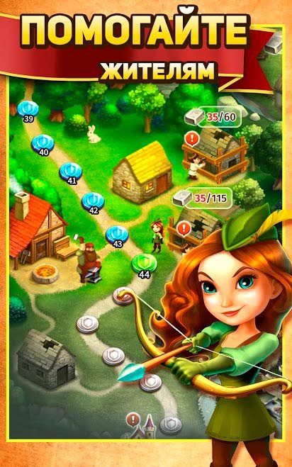 Робин Гуд решил взяться за спасение мира и теперь ей предстоит побороться со злобным шерифом по имени Ноттингем. Восстание, которое будет начато, сразу произведет на вас массу впечатлений и подарит удовольствие. Помогите главной героине помогать бедным и заступаться за них перед злодеями вселенной. Игроку нужно будет выбирать только одинаковые предметы и совмещать их вместе, чтобы получать один. Как только они сольются воедино, станут заметнее лучше и круче. Делайте это с каждым разом все больше и лучше, чтобы заработать огромное количество золотых монеток. Когда сможете скачать Робин Гуд. Легенды - Игра жанра «Совмести 3» на андроид получите возможность играть в измененную по всем параметрам головоломку три в ряд. Чем больше заданий вы сможете выполнить, тем дальше пройдете в игре. Помогайте, таким образом, всем жителям этого города и наконец, отыщите главного тирана. Одолеть шерифа в Шервудском лесу будет очень сложно и вам придется постараться.Робин Гуд. Легенды - Игра жанра «Совмести 3» - головоломка с сюжетом