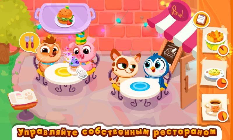 Каждый день игроков решивших скачать Bubbu Restaurant (Ресторан Буббы) на андроид будут ждать веселые сценарии и моменты в этой игре. Управляйте своим собственным рестораном и занимайтесь приготовлением шикарных блюд. Дети здесь научатся основам приготовления и работе ресторанов. Используйте рецепты для горячего и холодного, а также научитесь производить лучшие напитки. Клиенты будут приходить не только чтобы насытить свои животики, но и для утоления жажды. В качестве клиентов будут приходить другие животные, и они лишь добавят веселья к общей игровой детской атмосфере. Очень много уровней можно будет проходить здесь, и на каждом будут ожидать невероятные эмоции.