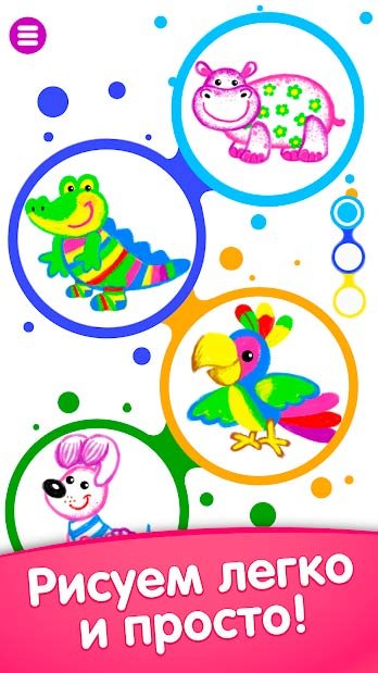 Подарите своему ребенку огромный виртуальный простор, где можно будет заниматься творчеством. Благодаря актуальной пошаговой инструкции дети смогут познавать и изучать процесс рисования. В этом игровом приложении собрано огромное количество самых веселых зверюшек с разноцветными красками. Каждый из них будет танцевать невероятно красивые танцы, и они будут исполнять даже ламбаду. Если скачать Учимся рисовать животных! Детские игры для детей на андроид для ребенка он сможет веселиться, просто нажимая на разные сенсорные кнопки. От этого получаешь удовольствие, и к тому же ребенок сможет одновременно развиваться. Заниматься рисованием станет намного проще, и дети будут получать радость от происходящего. Огромный набор развивающих игр игроки смогут проходить и радоваться. Бегемотики, кони, обезьяны, тигры и даже крокодилы смогут наслаждаться этой потрясающей игрой.