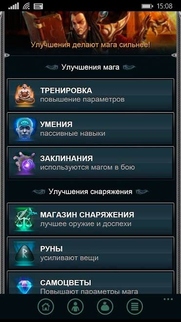 У каждого действующего в этом огромном мире магического лорда будет своя экипировка, и она должна быть максимально мощной. Можно использовать дополнительно набор артефактов, чтобы сделать героя еще круче и мощнее обычного. Если скачать Битва магов - онлайн РПГ на андроид, то ежедневно нужно будет выступать в эпических схватках с героями и ужасными монстрами. Категорий таких очень много и все они готовы навести ужас на игроков. За такой простой, но по-своему оригинальной игрой можно провести очень много времени безотрывно. Тем более что для прохождения приключений не потребуется подключаться к интернету, и можно будет играть свободно.
