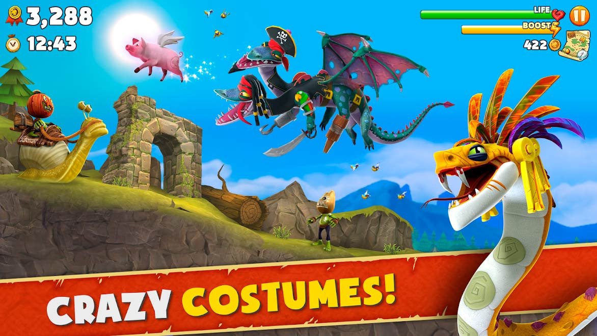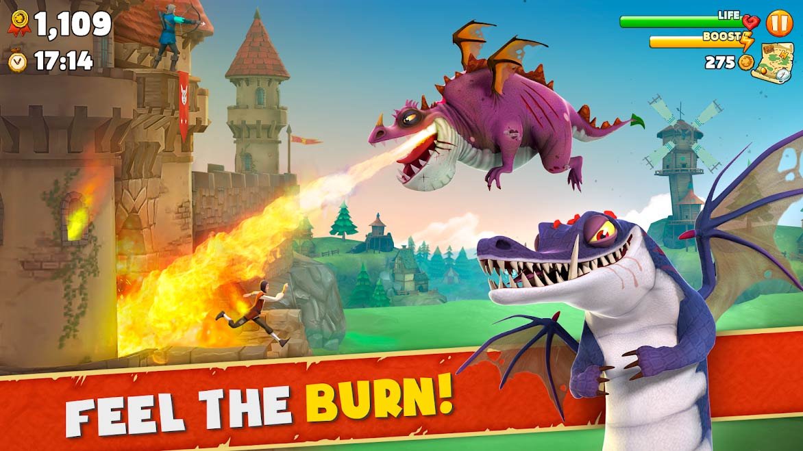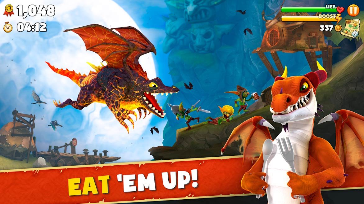 Как только вы сможете взять на себя управление самым свирепым и даже жутким драконом, получите удовольствие от прохождения сотни миссий. Открывайте за успешное прохождение миссий новенькие костюмы и используйте их для улучшения своих суперспособностей. Когда сможете скачать Hungry Dragon на андроид пытайтесь летать как можно быстрее и не бойтесь сжигать абсолютно все, что встретится вам на пути. Чем дальше вы будете подниматься по уровням, тем больше опыта сможете получить. Уничтожайте по пути даже деревни и леса, ведь в игре это очень даже приветствуется.