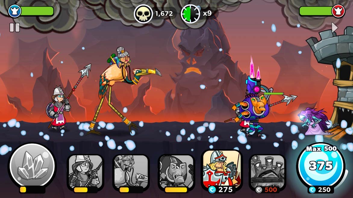 В игре 5 разных фракций – Королевство, Нечисть, Роботы, Нефритовая Империя и Захватчики. Воины каждой фракции имеют уникальный внешний вид и особые навыки. Каждая фракция включает в себя не только обычных воинов, но и отдельную башню, а также особого героя с улучшенными характеристиками, который способен переломить ход битвы.