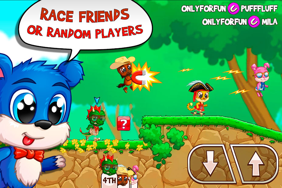 Подключайтесь к масштабной арене, где сразу восемь забавных пушистиков будут бороться друг с другом, чтобы достичь великолепных результатов. Обгоняйте их всех, пока не станете первым в системе рейтинга. Если скачать Fun Run 3: Arena - Бег Игры на андроид можно будет даже создать свой собственный клан вместе с приятелями, и тогда вы легко узнаете, кто на данный момент находится на связи. Кроме всего этого игра подарит оригинальную возможность участвовать в битвах между кланами два на два. Больше трех десятков бонусных предметов помогут вам выиграть, например скольжение или ускорение. Каждый день поднимайтесь все выше по таблице рейтинга и тогда ваши достижения окажутся лучшими за историю.