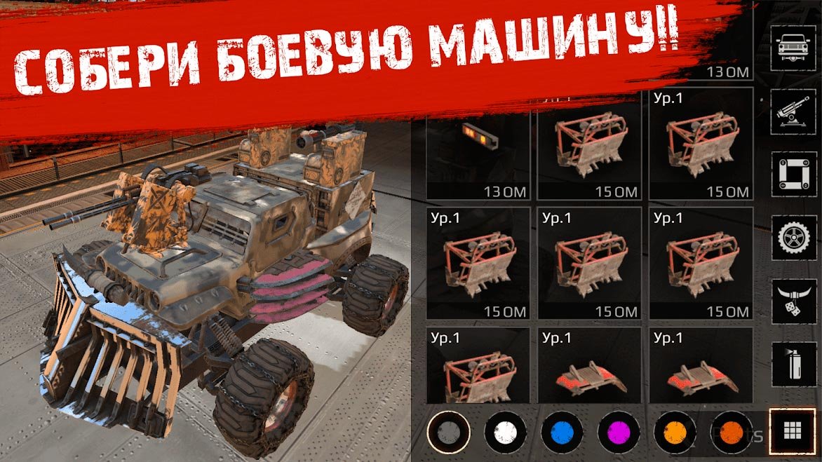 Пришло время получать удовольствие от такой крутой мобильной гонки. Игрокам предстоит оказаться в жутких условиях апокалипсиса, когда местное население планеты начало открыто воевать за ресурсы, и каждый день участвует в смертоносных сражениях. Участвуйте в жестоких рейдах, улучшайте боевые качества своего автомобиля. Настраивайте броню, улучшайте вооружение и делайте эффективными его характеристики. Каждый день в мире Crossout Mobile игроков ждут сражения за полезные ресурсы на тачках типа монстров. Разрушайте своих соперников и уничтожайте их машины в хлам. Вас ждет неравная борьба в таких безумных условиях и эта действительно уникальная особенность такой крутой игры. Попробуйте проверить свои способности в командных поединках режима четыре на четыре и безжалостно разрушайте автомобили своих соперников. После апокалипсиса гонки стали намного интереснее и более сумасшедшими. Почувствуйте предельную мощь игрового движка Crossout Mobile став участником первого поединка.
