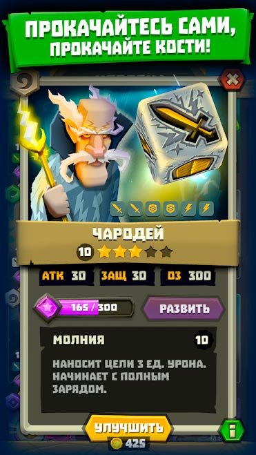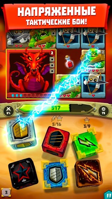 После знакомства с этой игрой вы поймете, что она лучшая из всех игральных костей, которые только есть на мобильных устройствах. Начните свое первое сражение и побеждайте против жестокой войны с монстрами. На каждом очередном уровне в Dice Hunter: Dicemancer Quest нужно будет включать голову, и думать над прохождением целого ряда задач. Закрепите кости и бросайте их, пока не получится собрать самую мощную комбинацию магических приемов. Создайте лучшую команду для войны и проработайте до невозможного свою стратегию. Постоянно улучшайте уровень своих костей и добавляйте к ним новые магические заклинания для улучшения показателей.Информация об игре