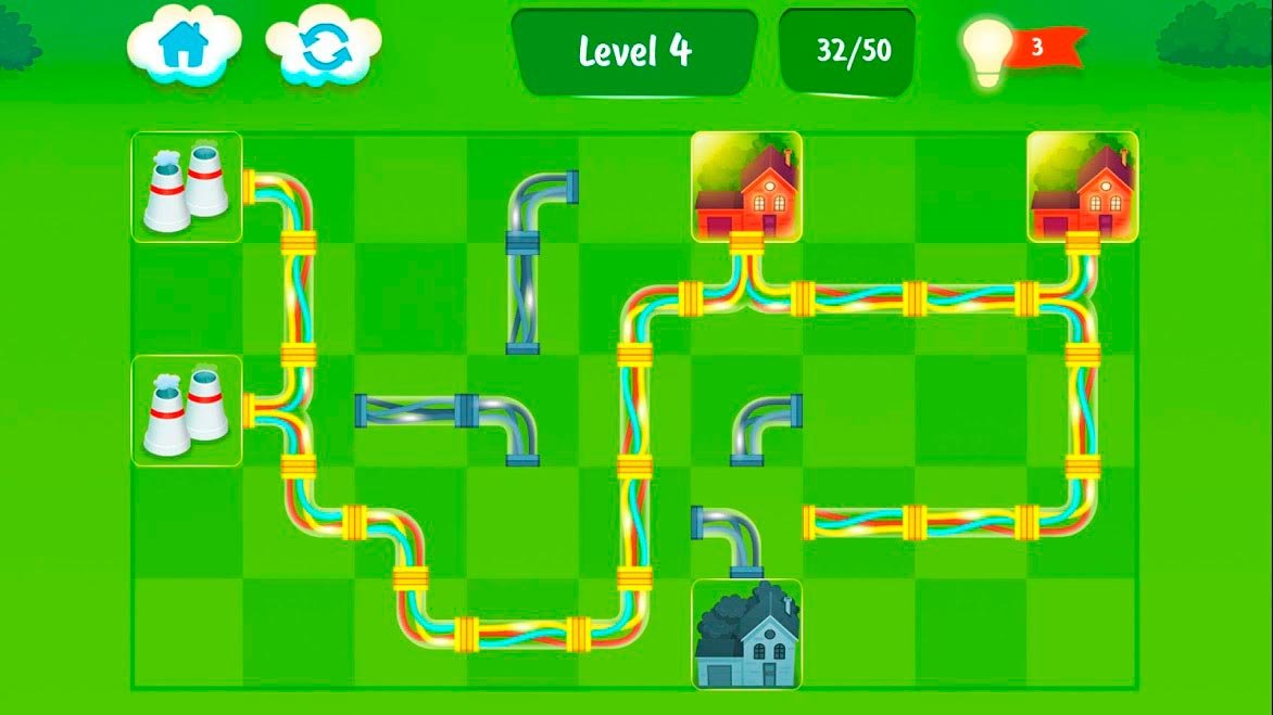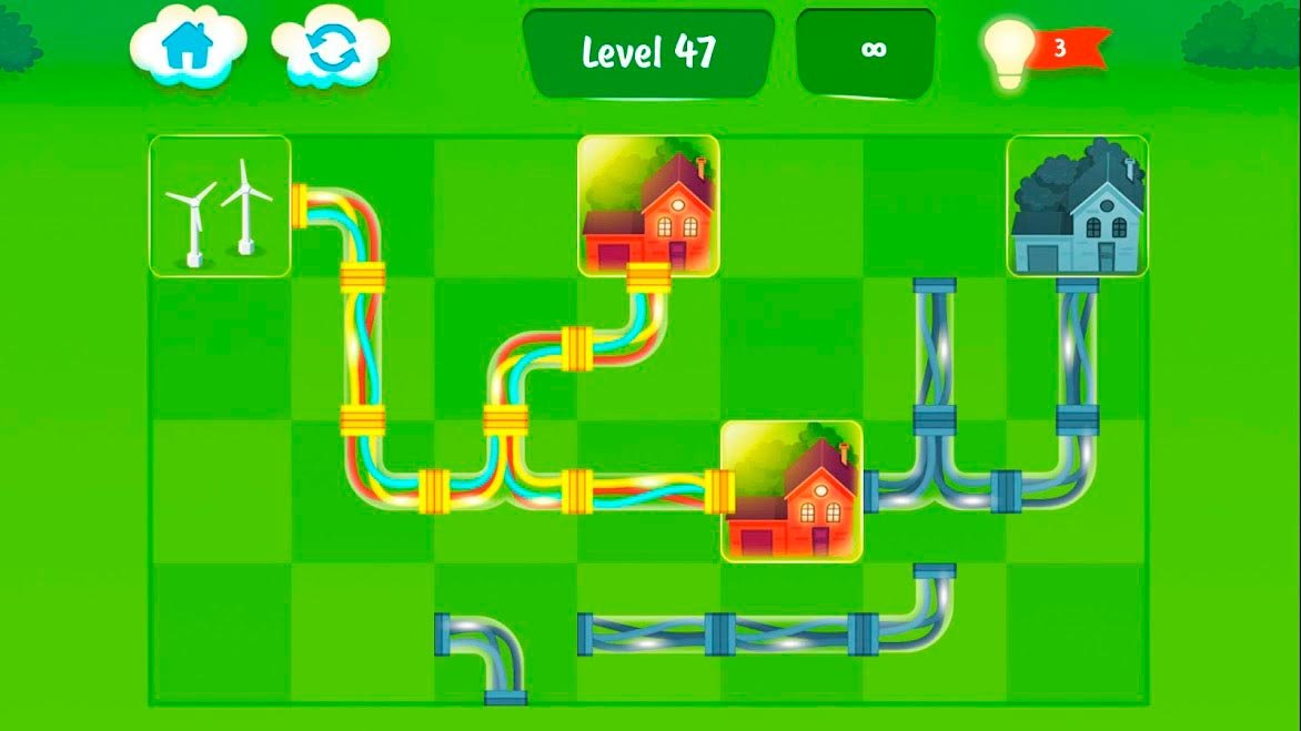 Как только вы окажитесь в этой современной головоломке узнаете про особенности и ее правила. На игровом поле будет доступно некоторое количество домиков, и они расположены в абсолютно разных местах. Все они уже готовы к эксплуатации, остается только подключить их к сети электропитания, чтобы до конца закончить это дело. Проведите достаточное количество воздушных линий электропередачи и все дома смогут включить свет. Благодаря Энергия - подключи дома у вас будет отличный повод размышлять и улучшать свои логические способности. Поворачивайте линии цепочки электропередач в такую сторону, куда вам будет нужно. Главная задача провести этот ток до каждого дома и игра будет закончена на успешном уровне. Такая удивительная и простая игра будет интересной как для взрослых, так и для детей. Никогда не поздно шевелить мозгами, чтобы пройти как можно дальше. В Энергия - подключи дома действительно много уровней и каждый по-своему уникален и неповторим.Энергия - подключи дома – инновационные головоломки