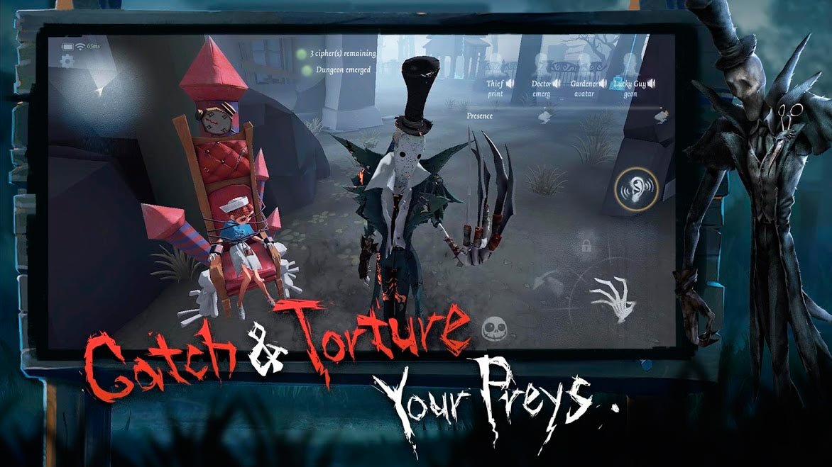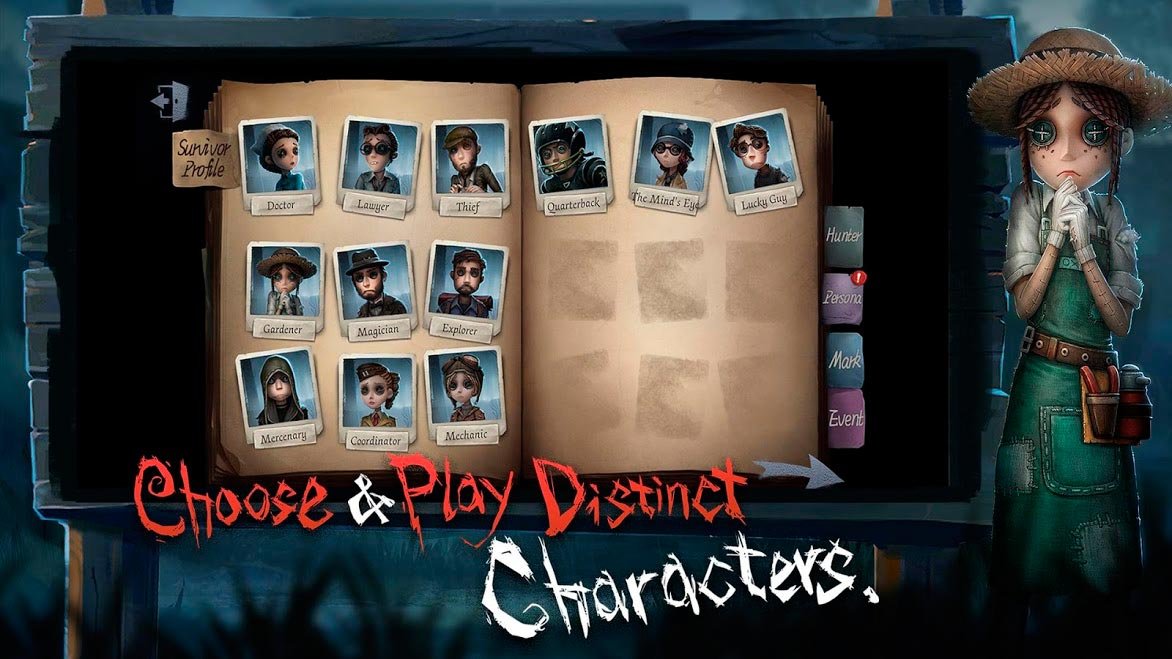 Identity V – это уникальный ужастик для мобильных гаджетов с характерной жуткой атмосферой и оригинальным сюжетом. Здесь много запоминающихся, порой цепляющих до глубины души моментов, так что игровой процесс моментально затягивает и не дает оторваться. Знакомьтесь с четырьмя главными героями, которым приходится на протяжении всей игры скрываться от кровожадного охотника. Вам нужно сплотить их в надежную команду, чтобы сбежать от своих страхов и преследователей.