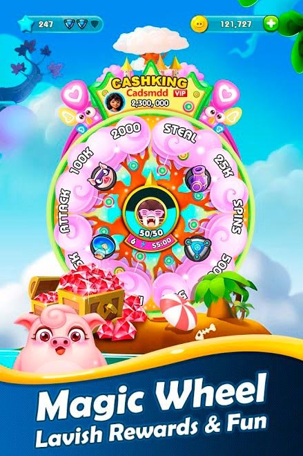 Начинайте крутить колесо удачи, чтобы выиграть невероятное количество призов и наград. Наслаждайтесь очаровательной и волшебной атмосферой этого увлекательного мира и зарабатывайте больше всех золотых медалей. Продолжайте каждый новый уровень в Piggy Boom создавать новенькие острова и некоторые из них будут действительно эксклюзивными. Помогать вам в процессе игрового процесса будут замечательные животные с очень веселым внешним видом. Знакомьтесь с ними всеми и открывайте новые награды. Все что понадобится игроку сейчас – это получить немного везения или удачи. Подключайтесь в Piggy Boom к многопользовательскому режиму игры и встречайтесь с остальными игроками по всему миру. Вы сможете устроить с ними соревнование и заработать еще больше золота. Когда ваши острова будут готовы, не забывайте их защищать от постоянных нападений и атак. Делать это будут такие же домашние питомцы.