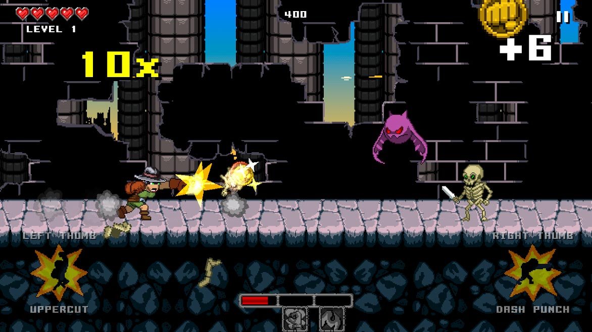 Вместе с этой легендарной пиксельной игрой поклонники жанра смогут сделать огромное количество работы по уничтожению врагов, и прокачивай своего бойца. Открывайте множество дополнительных предметов и оборудование, которое поможет увеличивать свою мощь. Чем дальше вам удастся пройти в Punch Quest, тем больше будет доступно уникальных суперспособностей. Попробуйте приручить домашнего монстра или Динозавра, чтобы он помогал вам в битвах с еще более яростными врагами. Каждого действующего персонажа здесь можно будет по-своему оригинально нарядить и сделать его индивидуальностью. В такой игре просто не реально скучать, особенно когда ежедневно появляются новые квесты и дополнительные задания.Информация об игре
