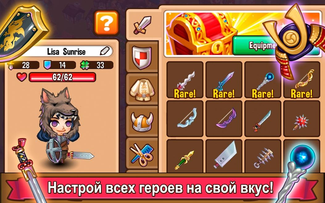 В этом увлекательном приключении игроку нужно будет заниматься полным восстановлением города. Постройте магазины, домики для героев, улучшайте интерьер и в конце у вас будет свой огромный город. Собирайте огромное количество героев и создавайте из них самую крутую команду. После их можно будет отправлять на легендарные войны. В процессе прохождения Adventure Town главный герой сможет исследовать множество разных локаций, таких как пустыня, вулканы, водопады и много всего другого. Самых сильных в конце будет ждать встреча с эпическими Боссами, а потом и вовсе с повелителем тьмы. Далеко не у каждого получится победить его и уж тем более найти.Информация об игре