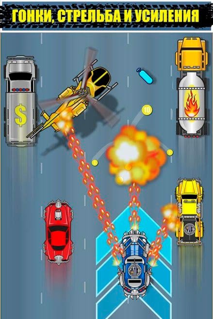 В этих сумасшедших гонках самым важным будет не только развивать невероятно быструю скорость, но и уничтожать своих соперников при помощи пуль и огня. Больше десятки оригинальных видов вооружения, которое можно будет установить, доступно гонщикам из Дорожные войны. В погоне за увеличением огневой мощи своего транспортного средства не стоит забывать про улучшение качеств обороны. Поставьте туда самую лучшую броню в мире и прокатитесь на разных тачках. Игроки могут собрать достаточно большой гараж из транспортных средств, где будет спорткар, ракетная тачка или любая другая, не существующая в реальности. Естественно, что на дорогах не вы один сможете стрелять, потому что Дорожные войны предусматривает жестоких соперников. Старайтесь увиливать от летящих в вас ракет и тогда можно рассчитывать на успешное окончание заезда. После каждой победы в гонке игроки получат монетки, которые станет реально потратить на покупку нового оружия или вовсе тачки.Стать воином дорог можно в Дорожные войны