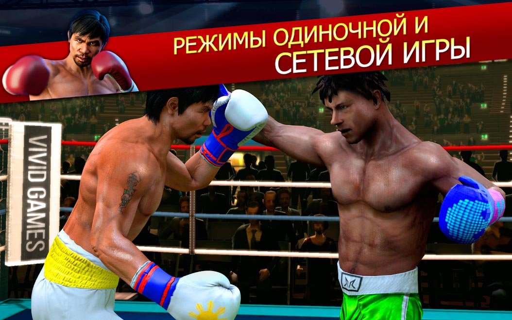 Крутая трехмерная графика, реалистичный физический движок, реальные приемы и удары, а также самые лицензированные боксеры со всего мира. Все это будет у вас на мобильном телефоне или планшете вместе с игрой Real Boxing Manny Pacquiao. Можете каждый день сражаться в боксерских турнирах и Чемпионатах, где можно выиграть пояс и естественно деньги. Легко научитесь выполнять апперкоты, джебы и другие реалистичные удары. Станьте лучшим бойцом во всем мире и обязательно попробуйте сыграть в многопользовательском режиме. Здесь игроки смогут пройти больше десятка испытаний и выиграть потрясающие награды.
