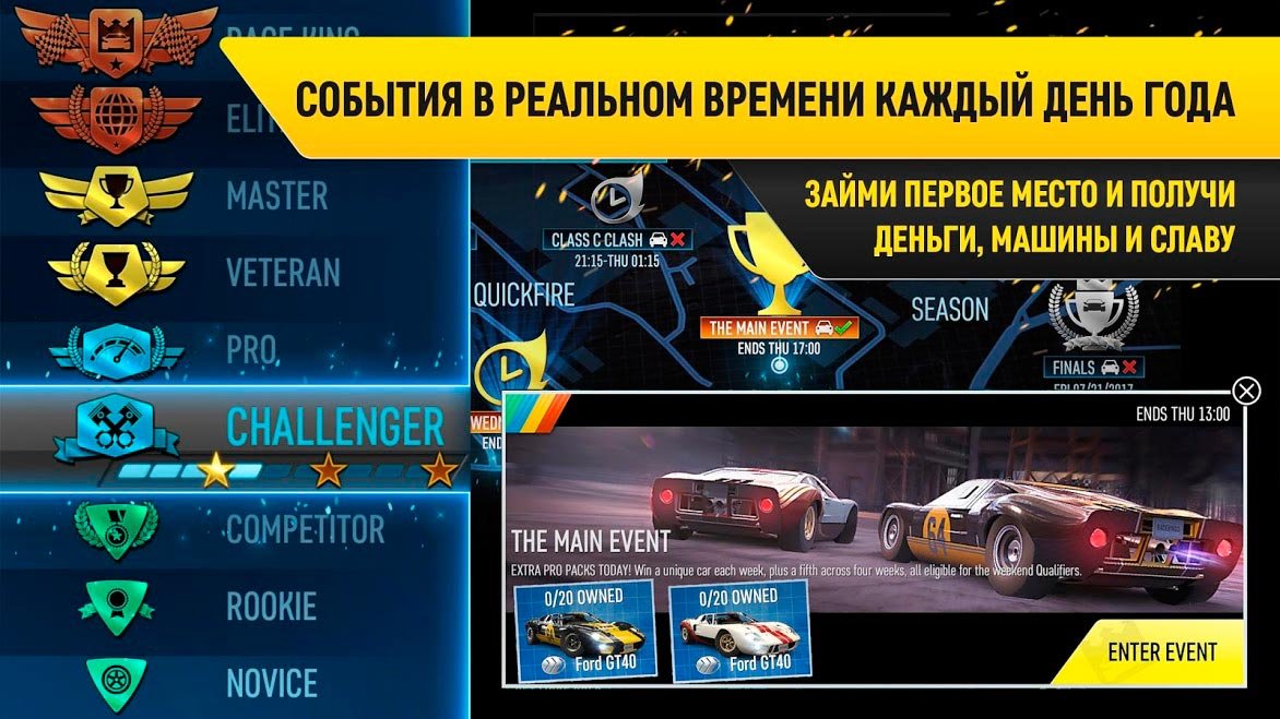 Почувствуйте абсолютно новый стиль гоночного симулятора и сражайтесь один на один с гонщиками по всему миру. Попробуйте стать победителем в этой атмосфере и выиграйте массу наград и достижений. Совершайте мощные скоростные рывки, добирайтесь до финиша первым и улучшайте свой профессиональный уровень. Став участником Race Kings вы сможете участвовать в невероятно захватывающих и напряженных дуэлях против соперников по всему миру. Если получится победить, тогда вам достанется абсолютно все. Весь игровой процесс этой гонки был разработан специально для мобильных платформ. Так как игра проходит в режиме реального времени, и поэтому каждый день гонщиков из Race Kings будут ждать новые актуальные события и режимы. Устройте напряженные соревнования и постарайтесь вырвать победу на последних минутах. Вам предстоит пройти путь от новичка гонок и стать профессионалом. Постоянно оставайтесь в курсе последних игровых событий и не пропускайте новых заездов.Race Kings – это гонки только для настоящих королей дорог