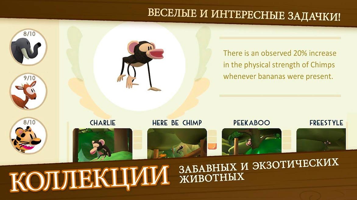 Исследуйте огромное разнообразие удивительных территорий и просматривайте новые места. Простым кликом делайте свои фотоснимки и наслаждайтесь их просмотром. Параллельно занимайтесь строительством своего самого лучшего музея во всем мире и приводите в него друзей. В Snapimals: Находи зверушек! Играют как взрослые, так и дети, потому что игра создана для всех. Она обязательно подарит положительные эмоции и удовольствие от происходящего на экране мобильного. Найдите своего первого зверя и проследите за ним. Смотрите, чем он сможет заниматься в условиях дикой природы, и сделайте наиболее удачный снимков. С каждым из доступных животных можно поиграть и повеселиться, ведь для этого есть мини-игры.Информация об игре