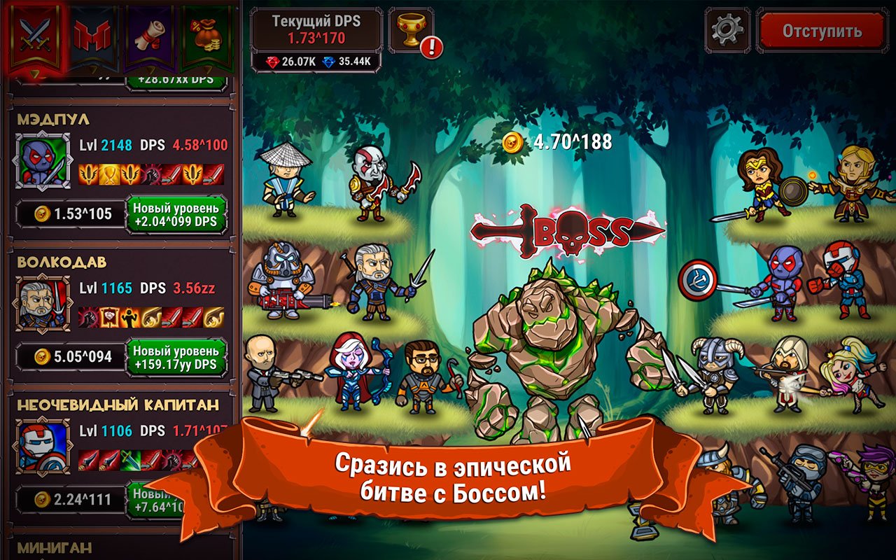 Вы должны скачать Marmok's Team Monster Crush на андроид, потому что игровой процесс полон красочных элементов, а сама игра затягивает. Вас ждет огромное количество преимуществ, которые подарят удовольствие и наслаждение. Встаньте в ряды вместе с железным человеком или капитаном Америкой и завоюйте успех. Прокачивайте самого главного героя Мармока, а он станет единоличным лидером для своей мощной команды. Используйте все имеющиеся у воинов навыки в онлайн поединках и выигрывайте битву у Босса. Здесь их достаточно, чтобы насладиться игрой. С каждым разом все больше увеличивайте численность своей армии и помогите блогеру попасть в телевидение. Ведь он мечтает об этом, но как оказалось для этого нужно будет проделать очень длинный и опасный путь.