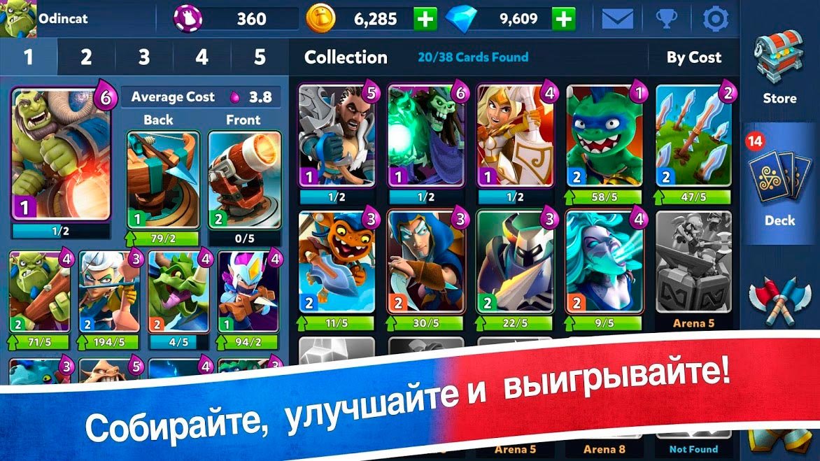 Сразу четыре главных героя будет доступно на выбор участвующему здесь игроку. Можно будет сыграть за абсолютно любого и достигнуть лучших результатов. Соберите себе колоду из максимум двенадцати лучших карт и выпускайте их на поединки. Они смогут защищать ваши башни и приводить в действие самые эффективные комбинации. На данный момент в Castle Creeps Battle собрано около десятка разных боевых арен и на каждой станет реально сражаться против лучших игроков по всему миру. Можете даже создать свой собственный клан и после этого принимать участие клановых войнах самого напряженного характера.
