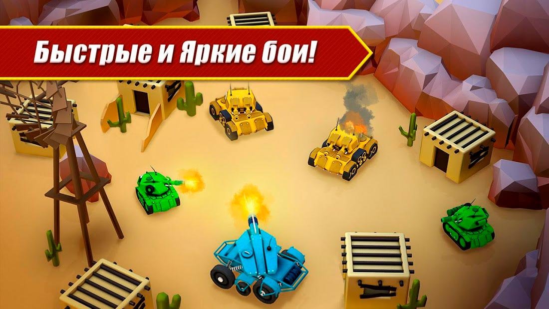 Сделайте свой правильный выбор в пользу любого из имеющихся здесь танков. Сверчок, Тарпан, голиаф или любой другой можно будет выбрать для участия в баталиях против лучших игроков со всего мира. Принимайте участие в масштабных войнах с другими игроками из Боевая Арена: Потрясающие Танковые Сражения и наслаждайтесь победами. Все боевые сражения на этом виде техники будут проходить на разнообразных локациях, например, таких как заброшенные заводы или вовсе заснеженные горные долины. Развивайте свой собственный танк, пытаясь достичь максимального уровня, и тогда он будет непобедимым. В этой игре очень много доступных апгрейдов, которые стало реально использовать. Заводите свой танк и отправляйтесь на войну. Это будут ваши лучшие в жизни войны, от которых получаешь только удовольствие. Почувствуйте себя единственным героем Боевая Арена: Потрясающие Танковые Сражения способные повергнуть врагов в состояние убитых.Боевая Арена: Потрясающие Танковые Сражения и удивительный геймплей