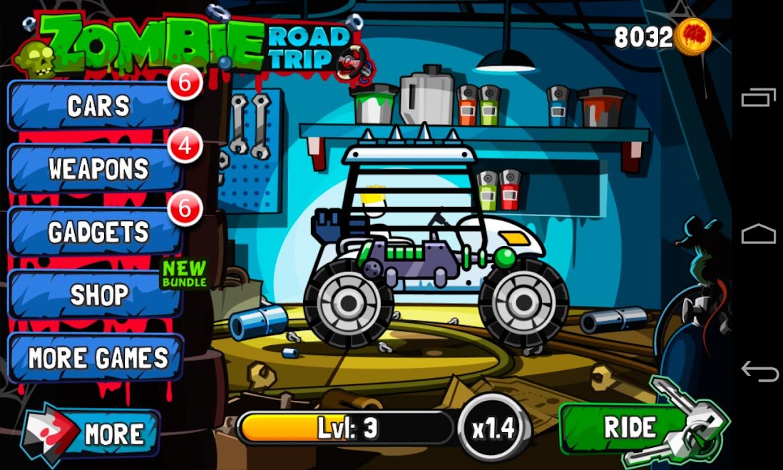 Прокатитесь по пяти разнообразным трассам и наслаждайтесь окружающей атмосферой апокалипсиса и ужаса. Каждая местность по-своему уникальная и это вам точно понравится. Попробуйте прочувствовать всю динамику такой игры как Zombie Road Trip и наслаждайтесь ею. Около десятка разных видов вооружения будет доступно каждому из игроков, чтобы побороться с опытными монстрами. Получайте как можно больше монеток и накопите их на покупку нового сверхмощного автомобиля, которых в игре больше трех десятков. Все это безумие и крутая атмосфера созданы в превосходной графике с высоким качеством разрешения.Информация об игре