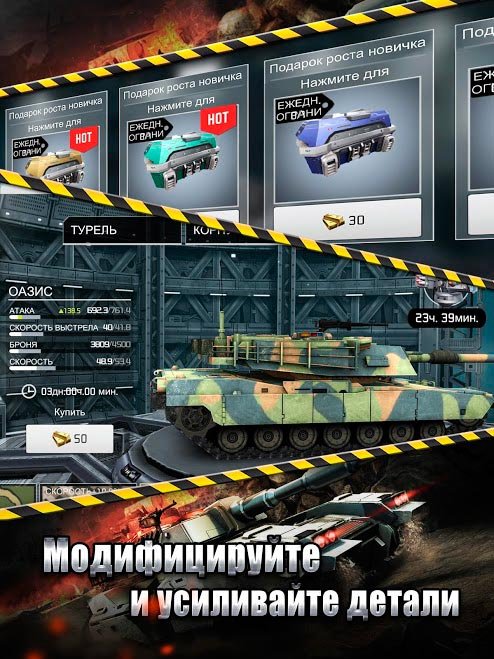 Как только у вас появится танк, его нельзя будет оставлять в таком изначальном состоянии, ведь в игре полно улучшений и предметов для модернизации. Используйте дополнительное вооружение, улучшайте броню и другие места своего боевого транспорта. Он должен не только выглядеть как мощное оружие, но и доказывать свой уровень подготовки на деле в показательных боях. Участвуйте в войнах между игроками по всему миру и продвигайтесь по системе глобального рейтинга, где есть единоличный лидер. Быть может, именно вы сможете стать следующим героем такой масштабной войны и тогда вам покоряться все остальные игроки режима и истории.