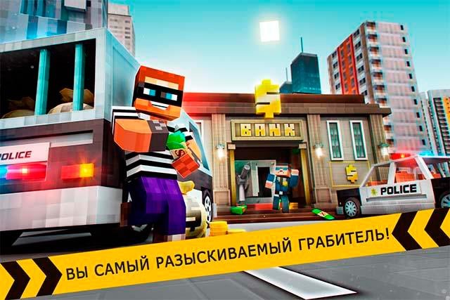 Как только вы совершите очередное преступление, сразу же ныряйте в автомобиль и мчитесь на максимальной скорости, чтобы ни один коп не смог вас поймать. Постарайтесь продемонстрировать свои невероятные способности в Грабитель Полиция Гонки Ограбить Вор чтобы убежать и остаться с награбленным. В противном случае вас отправят за решетку и оттуда уже выхода не будет. Игроков этой пиксельной вселенной ждут новые увлекательные приключения в роли преступника, который будет каждый день зарабатывать не честным путем. Тут одновременно сочетается несколько потрясающих жанров, которые так любят мальчики. Гонки, перестрелки и пиксельная трехмерная графика. Каждый игрок из Грабитель Полиция Гонки Ограбить Вор должен продемонстрировать свои навыки и способности на самом максимально уровне, чтобы совершить самый безумный побег и добиться уважения от других игроков. Копы будут долго висеть на хвосте, поэтому нельзя давить на тормоз, рискуя каждый раз быть пойманным.Пиксельные кубики удирают от копов в Грабитель Полиция Гонки Ограбить Вор