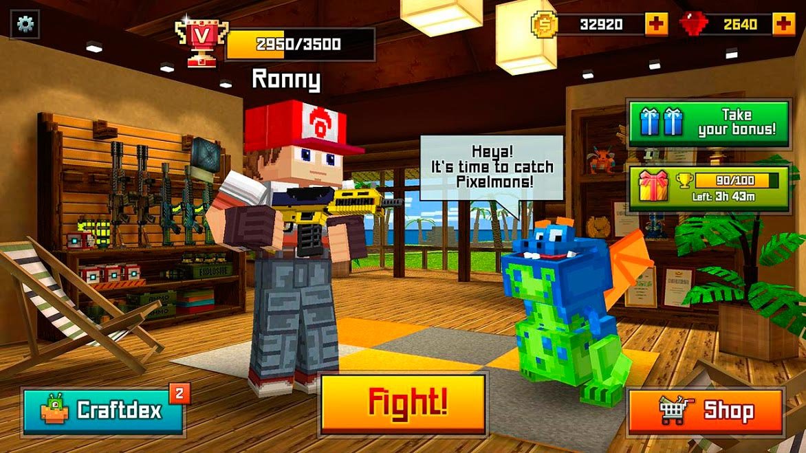 Подключайтесь к режиму многопользовательской игры и бросайте вызов своим друзьям каждый день, чтобы участвовать в сумасшедших сражениях между тоннами игроков. Это будет самая захватывающая и нереально крутая стрелялка на мобильном. Все битвы в Pixelmon стрелялки онлайн будут происходить на огромном острове, где и будут сражаться самые лучшие герои пиксельного мира. Постарайтесь побеждать постоянно, ведь на кону стоят иногда даже легендарные яйца. Будет это автомат или снайперская винтовка не важно, потому что в любом случае вас ждут победа при наличии достаточного опыта. Не жалейте денег на приобретение новеньких пушек, чтобы наконец стать обладателем новых пиксельмонов.Информация об игре