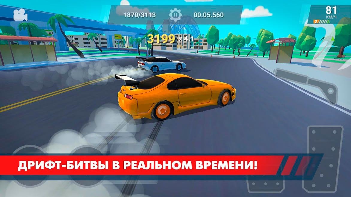 Попробуйте стать первым, кто может сыграть в этой увлекательной гонке. Здесь можно показать весь свой профессионализм в дрифтинге, а подключившись к многопользовательскому режиму, вы сможете противостоять лучшим в истории игрокам по всему миру. Приглашайте в Drift Clash своих друзей и устраивайте легендарные соревнования, в которых самый лучший получит шанс заработать кучу очков славы и денег. Выиграйте все тридцать гоночных тачек и наслаждайтесь поездками на них. Не бойтесь прожигать резину и дрифтуйте в корпоративном режиме вместе с друзьями. Можете наслаждаться этим уникализированным стилем, который создан под ретро. Это совершенно новые приключения, которые понравятся каждому. Игрокам Drift Clash должен понравиться шанс участвовать в режиме многопользовательской игры с лучшими гонщиками вселенной. Попробуйте превратиться в короля дрифтинга и заработайте все тачки.