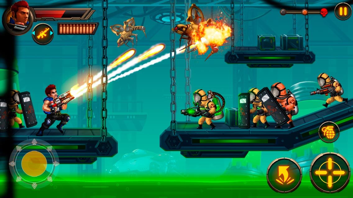 Соберите самую эффективную команду из стрелков и выдвигайтесь в поединки против лучших злодеев. Действующему игроку предстоит пройти через полную серию из сотен уровней, где полно врагов, уникальных локаций и эпических Боссов. Каждый день в Metal Squad: Shooting Game получайте как можно больше опыта от активных действий и попробуйте собрать в своем арсенале невероятное количество вооружения. Каждому поклоннику аркад должен понравиться такой оригинальный и веселый платформер. Можно пользоваться любыми видами пушек и гранат, чтобы одолеть армию из злодеев. Террористы постоянно становятся лучше, поэтому подготовьтесь. Игроку Metal Squad: Shooting Game предстоит сражаться даже с военной техникой. Взрывайте своих оппонентов и продвигайтесь еще дальше по уровням. Этот шутер никого и никогда не оставит равнодушным. Красивая HD графика и множество визуальных фантастических эффектов появятся сразу же на экране вашего мобильного устройства.Metal Squad: Shooting Game – мобильный захватывающий боевик