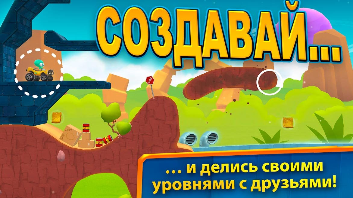 Попробуйте принять участие в самых безумных и интересных гонках вместе со своими друзьями или любыми игроками по всему миру. Вам предстоит пройти огромный путь, чтобы, наконец, отыскать все затерянные в прошлом сокровища. Главный герой Big Bang Racing является инопланетянином с добрым видом и забавными действиями. Вместе с ним вы будете заниматься исследованиями этой огромной фантастической планеты, и искать новые возможности для продолжения путешествий. Кроме того маленькие игроки могут попробовать в деле свои творческие способности, работая над созданием собственных трасс, по которым потом смогут прокатиться друзья. Гонщики в Big Bang Racing выигрывают только сундуки, а открывая их можно стать обладателями огромного набора улучшений и дополнительных предметов, которые смогут сделать мотобайк или машину еще более мощной и крутой. Попробуйте стать лучшим гонщиком во всей вселенной, и о вас услышит весь мир.Помогите Пришельцу стать лучшим в Big Bang Racing