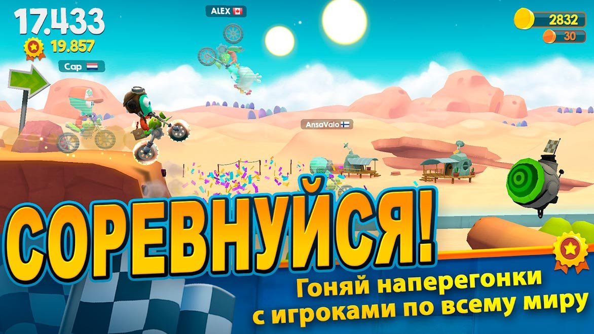 Даже сегодня никто не может точно сказать, сколько уровней в этой увлекательной гонке. На самом деле их здесь невероятно много и пройти все вряд ли сможет кто-то. Тем более разработчики постоянно добавляют в Big Bang Racing новые этапы соревнований и позволяют игроку кататься по новым уникальным локациям, где полно сложностей. Машина или байк выбирайте сами, на чем вы хотите продемонстрировать всем свое мастерство. Постоянно занимайтесь поисками сокровищ и постарайтесь найти кучу бонусных предметов, благодаря которым транспортное средство будет быстрее. Вызывайте своих друзей на соревнования и продемонстрируйте профессионализм в гонках.Информация об игре