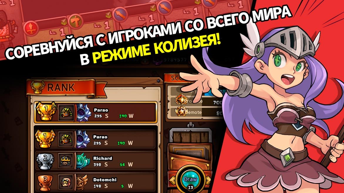 Приглашайте друзей в Бойцы «Бумбам» - Puzzle RPG и тогда сможете вместе играть через многопользовательский режим и сражаться в огромных Колизеях. Устройте настоящие соревнования против случайных игроков и попробуйте завладеть главными наградами. Придумайте максимально эффективную стратегию, которая поможет побороться с легендарными героями, и соберите лучшую колоду. Противники будут в шоке от твоего могущества. Уничтожайте своих врагов, которых собралось более сотни и все они находятся в разных локациях. Сделайте все возможное, чтобы победить в этой невероятно мощной войне.