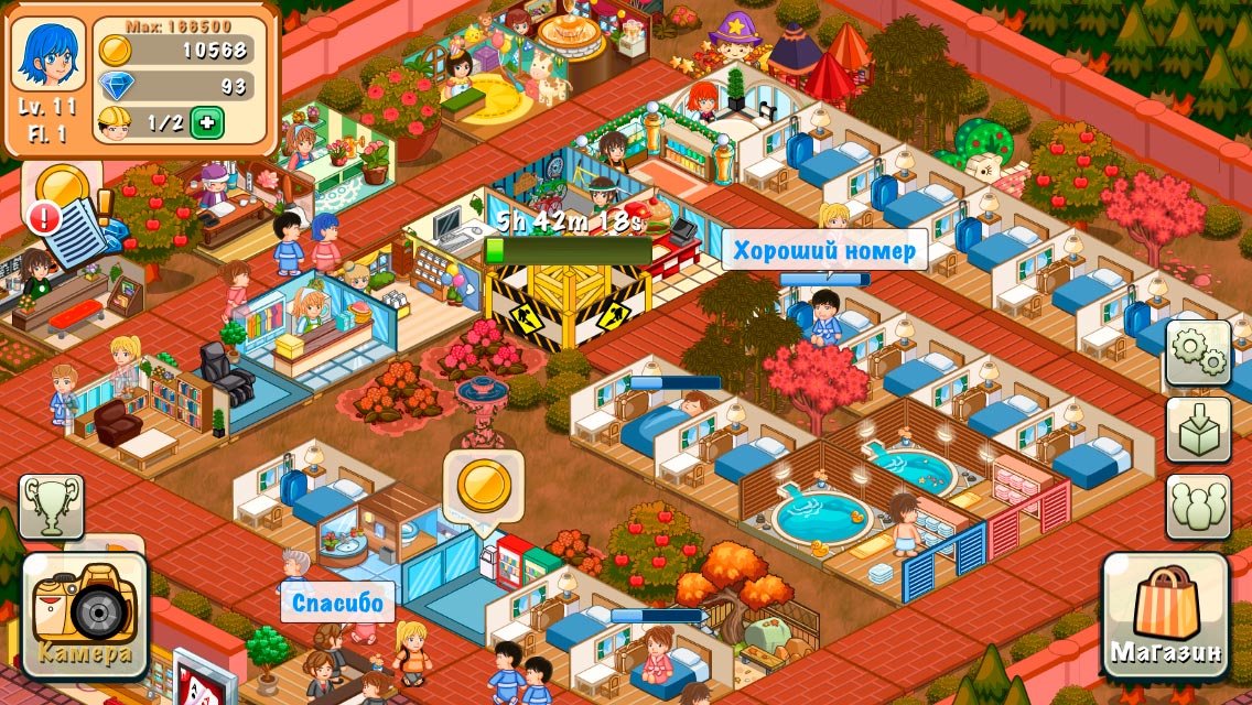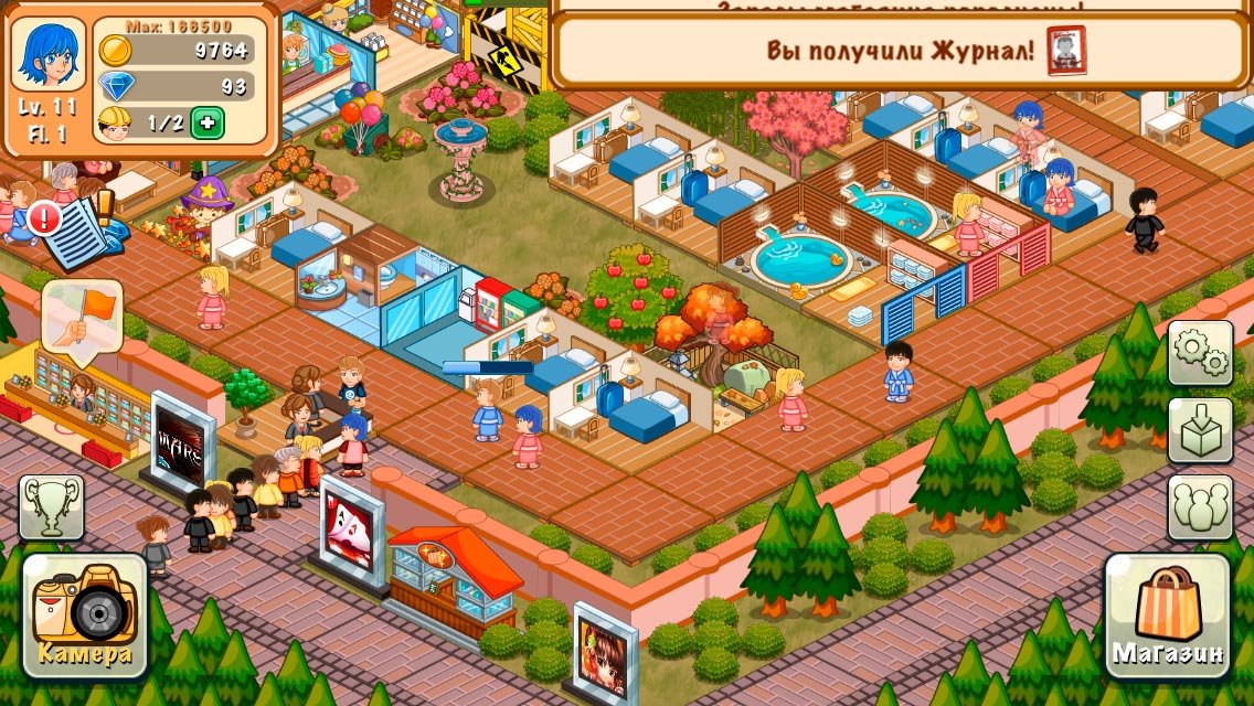 Уникальность такой игры заключается в полно русификации, что позволяет игроку познать все основы и моменты жизни в таком отеле. Вы можете сделать собственный отель самым лучшим, и тогда в него каждый день будет привлекаться огромное количество новых клиентов и посетителей. Ваш собственный бизнес в Hotel Story начнется с небольшого количества комнат, но потом их можно будет улучшать и расширять, чтобы в отеле появилось больше сотни разнообразных номеров. Кроме того нужно следить за созданием особенной атмосферы в собственной гостинице, чтобы она благоухала и позволяла посетителям наслаждаться каждый днем проведенным в отеле. Устанавливайте торговые автоматы или салона для занятий спа. Очень много разных предметов декора и инфраструктуры можно устанавливать в собственном отеле. Сделайте все возможное для того, чтобы постояльцы в Hotel Story наслаждались и приходили снова и снова.Hotel Story – управляйте огромным отелем
