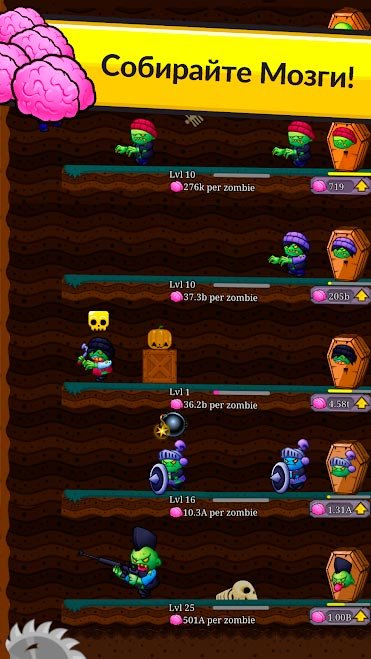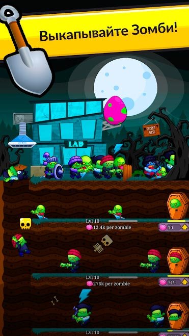 Приготовьте свои пальцы к кликанью, потому что придется очень много копать земли для того, чтобы добраться до спрятанных в землях Зомби. У них есть очень полезный ресурс, без которого человечество в этом мире не выживет и это мозги. Игроку необходимо будет собрать их как можно больше, чтобы быть полностью готовым к грядущему Апокалипсису и разрешить все вопросы с миром нашествия. Соберите как можно больше нежити в своей масштабной армии, потому что в целях героя Zombie Labs: Idle Tycoon стоит захват огромного мира людей и их порабощение. Станьте военным генералом у монстров и у вас могут появиться даже оборотни, готовые выступать в войнах. Не жалейте денег на инвестиции следующих раскопок в которых можно найти более древние ресурсы. Освобождайте боссов из мира Нежити и призывайте их к своей армии. У вас может получиться создать самую могущественную армию из нежити, а ведь все начнется с простой лопаты и кусочка земли. От игры Zombie Labs: Idle Tycoon будет очень сложно оторваться, ведь она в таком жанре.Zombie Labs: Idle Tycoon – это кликер по сбору нежити