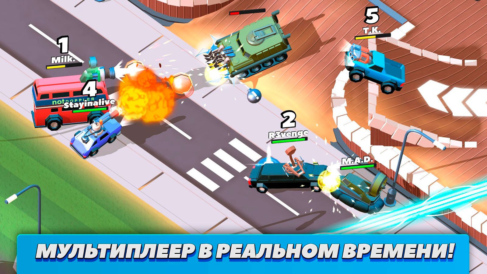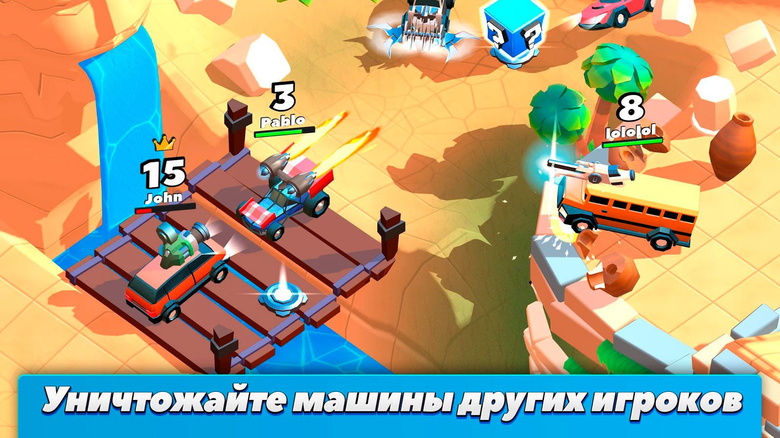 Машину можно изменять, используя специальные краски. В игре много насыщенных цветов и оттенков, которыми можно будет пользоваться. Измените дизайн тачки, используя больше 30 видов краски. В качестве пушек можно будет установить огнеметы, катапульты и много других видов вооружения. Приглашайте в игровой процесс своих друзей и попробуйте уничтожить их тачки. Рейтинг игроков обновляется постоянно, а значит, будет возможность в любой момент подняться выше.