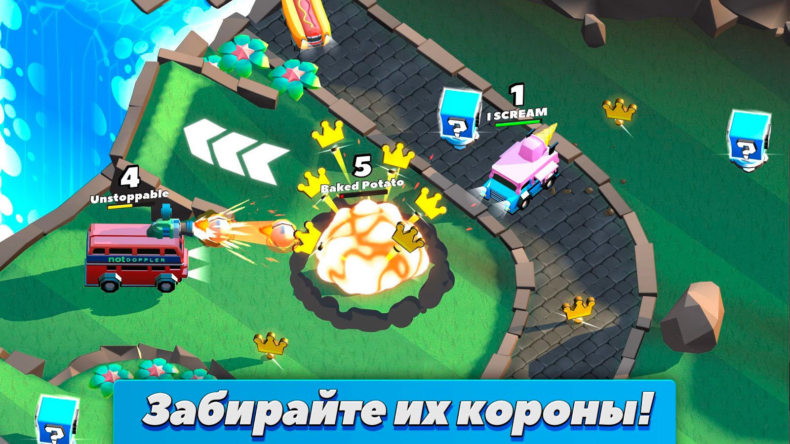 Вы должны будете использовать все доступные улучшения, чтобы стать лучше. Они будут становиться доступными после уничтожения автомобилей соперника. После того как сможете скачать Crash of Cars на андроид соберите все короны в матче и тогда появится возможность стать первым в рейтинге игроков со всего мира. Только лучшие будут достойный высоких мест и наград, так попытайтесь стать одним из них. Свергайте с первого места нынешнего лидера, и не оставляйте шансов других игрокам. Битвы могут проходить на одной из восьми локаций, и там вас ждет встреча с игроками. Больше семидесяти автомобилей делятся на четыре класса. Самые мощные и желанные для игроков это легендарные.