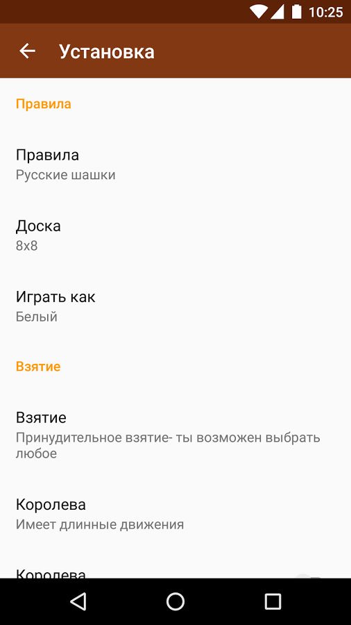 Не только стандартные и известные нам правила здесь действуют. Игрок сможет самостоятельно выбрать, в каком режиме, и по каким правилам будет продолжать игру с соперником. Это стандартные, привычные для нас русские шашки, увлекательные испанские и английские, которые по-другому называются чекерс. На свое усмотрение можно будет изменить правила в свою пользу. Тогда каждый из поединков будет вам доступен в простейшей и понятной форме. Продумывайте стратегию, создавайте увлекательные ходы, выбирайте с каждым разом сложность круче и просто тренируйте свои мозги.