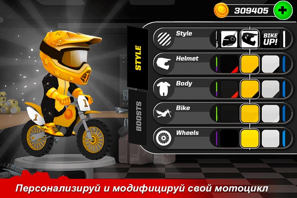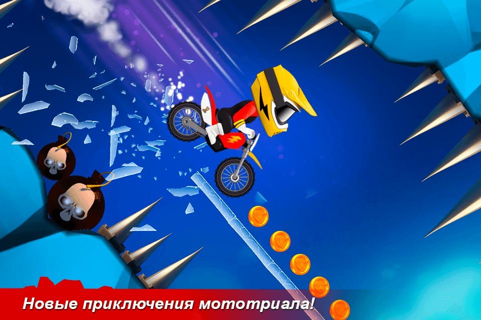 Выбирайте свой первый мотоцикл и начинайте тренироваться. Чтобы приступить к участию в турнире, нужно научиться выполнять крутые трюки и легко справляться с любыми препятствиями на пути. Попробуйте подключиться к Bike Up! Прямо сейчас и можете наслаждаться самыми захватывающими гонками. В процессе вам предстоит преодолеть невероятное количество уровней, а на каждом из них есть свои оригинальные препятствия, с которыми не всегда буде просто справиться. Постарайтесь научиться справляться с абсолютно любыми проблемами, несмотря на лежащие по трассам шипы, стекла или даже бомбы, вечно взрывающиеся по непонятным причинам. Впереди игрока будет ждать огромное количество легендарных соперников от Bike Up! И все они желают заполучить трофеи. Очень красивая трехмерная графика использована разработчиками, а также невероятно мощный физический движок. Это поможет вам по-новому увидеть мир гонок на байках и насладиться поездками под такими шикарными пейзажами.Гонки на мотоциклах и трюки вместе с Bike Up!