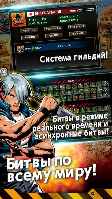 Поклонники режима мультиплеера могут подключиться к режиму игры в реальном времени, где огромное количество пользователей каждый день сражается за звание героев и они не боятся сумасшедших битв. Выигрывайте награды и дополнения, чтобы прокачать уровень своего боевого мастерства и проходите миссии. Приглашая друзей в METAL SLUG ATTACK, можно будет создать собственную Гильдию и тогда вместе с друзьями участвовать в специальных сражениях. Естественно, за успех в таких игроки получат намного больше наград и подарков, которыми можно свободно пользоваться.Информация об игре