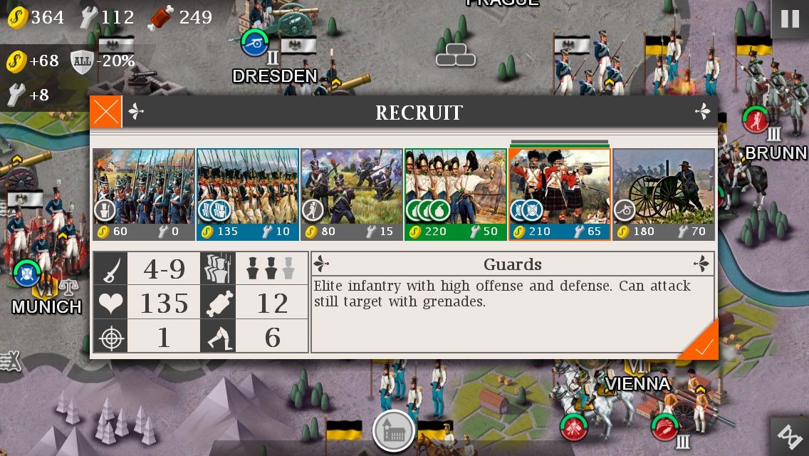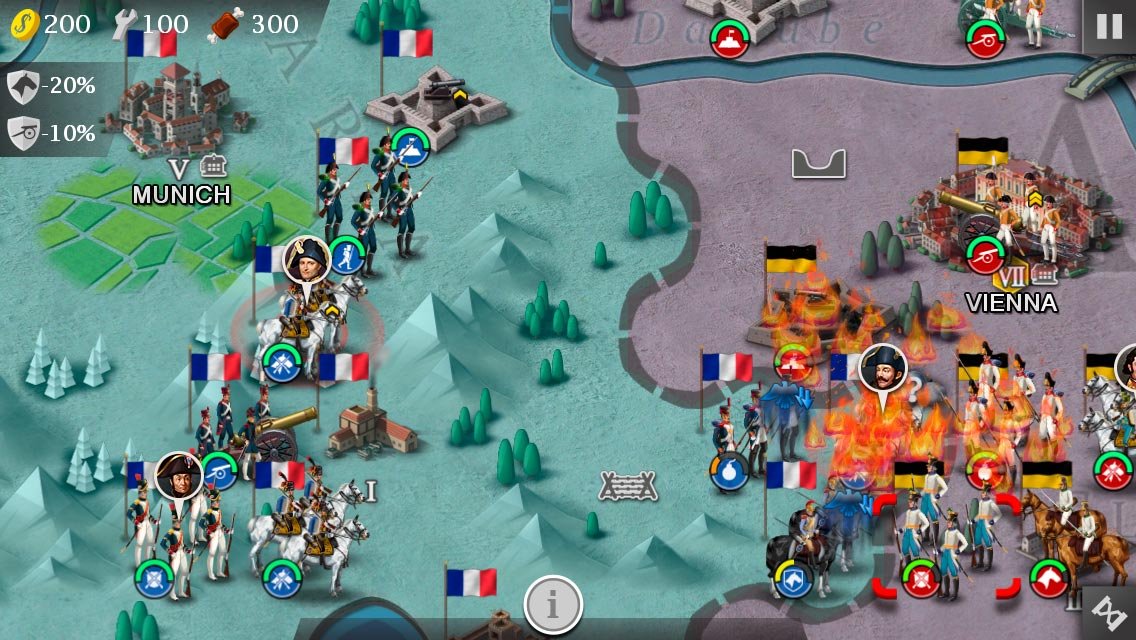 Прямо сейчас игроки смогут пройти любую из шести военных локаций, в число которых входят компании и их больше сотни. Коалиция, Римская Империя, Восстание в США и много всего другого теперь можно будет ощутить. Проследуйте через множество лет времен эпохи Наполеона вместе с European War 4: Napoleon. В процессе игроку нужно открывать достижения и участвовать в системе глобального рейтинга. Попробуйте придумать свою собственную крутую тактику, чтобы захватить власть над всем миром. Больше сотни разнообразных юнитов и можно выбрать каждого в борьбе за новые достижения и захваты. Игровой процесс будет сохраняться в автоматическом режиме и вам не придется переживать об этом.