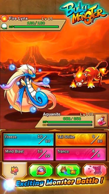 Игроки могут участвовать в поединках на любой из пятнадцати доступных арен, и каждая представлена в качественной фантастической графике. Исследуйте этот огромный мир и наслаждайтесь особенностями. На данный момент есть доступ к более чем пятидесяти разнообразным инструкторам, а в последствии можно самостоятельно настроить скин своего тренера. Если попробовать раз Bulu Monster, то уже будет сложно оторваться от таких безумных и ярких поединков. Ваши маленькие монстры будут постоянно расти, и пройдут несколько этапов революции, точно как в Покемонах, но здесь у вас будет доступ только к монстрам. Обыграйте всех соперников и вместе с монстрами придите на вершину мирового рейтинга.