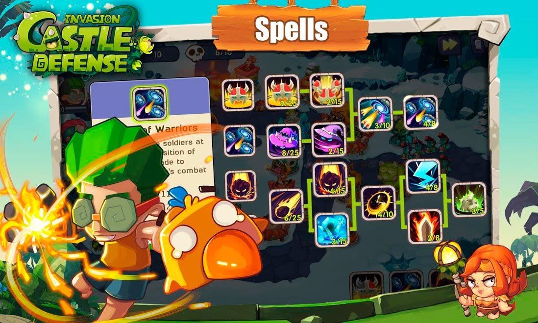 Игрокам должна обязательно понравиться эта милая и красивая графика изображения, с массой фантастических эффектов. Придумайте свою собственную стратегию, которая поможет грамотно расставить все башни на карте и взять верх над порождениями тьмы. Можете выбрать любую компанию или сыграть даже против своих друзей. Соберите как можно больше карт из Castle Defense : Invasion и составляйте из них комбинации, которые будут еще более мощными в атаке ваших врагов. В игре использована огромная система улучшения в виде дерева, где каждая карта может эволюционировать и стать лучше.Информация об игре